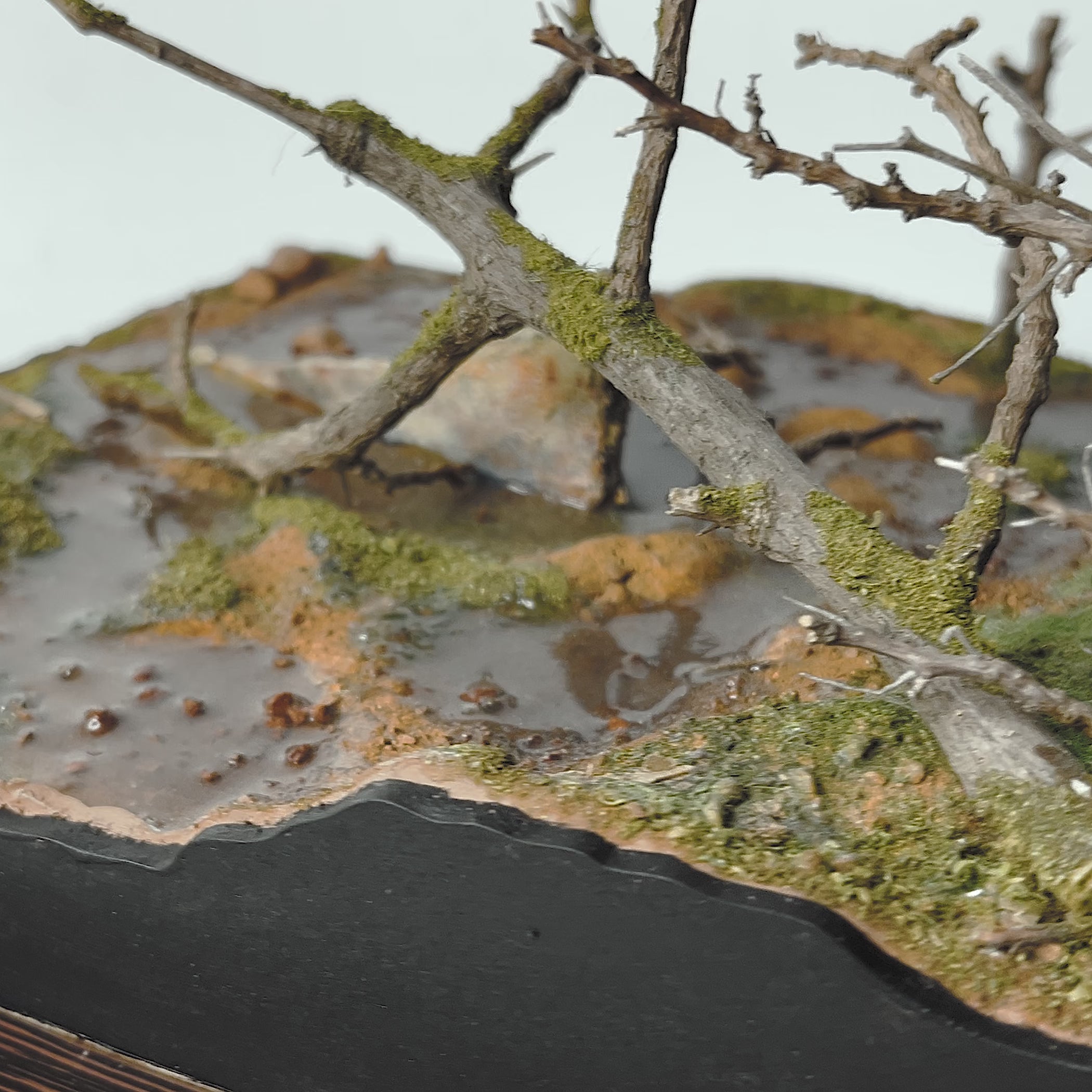 Roots grip a sunken hull, branches reach for faded skies. A boat sleeps beneath crooked trees, cradling puddles of forgotten rain. No breeze stirs its still voyage; only mud and moss guard its tale. Time drifts past this resting craft, where rivers once sang but silence now anchors the dream.
